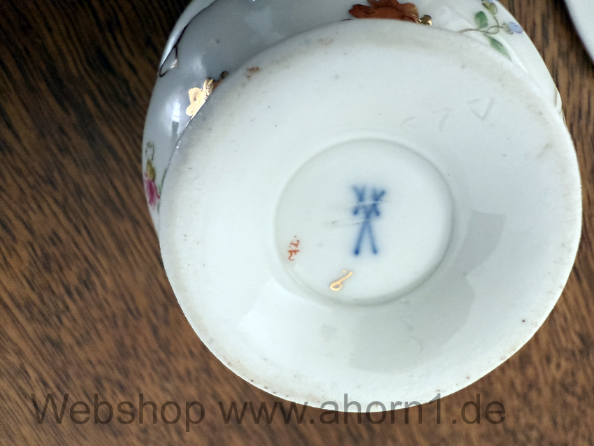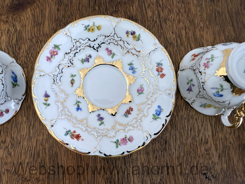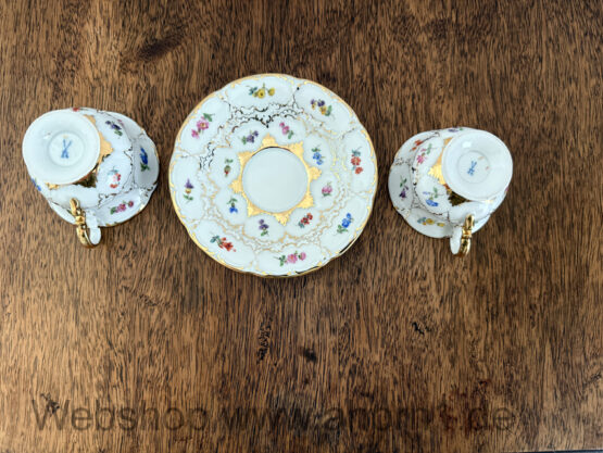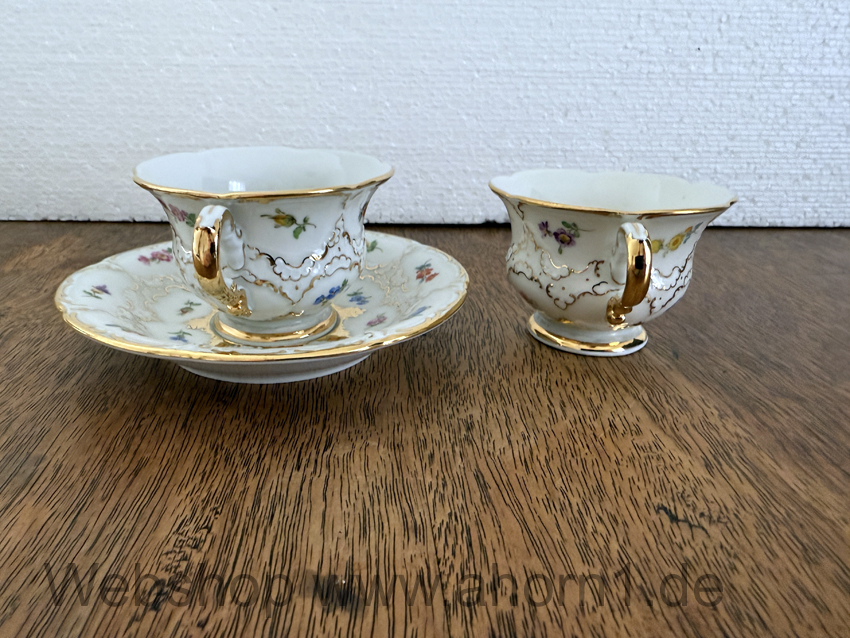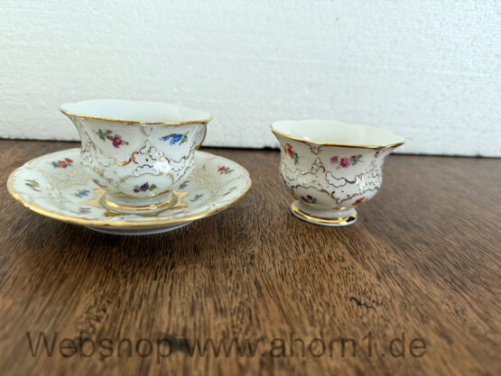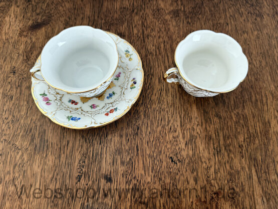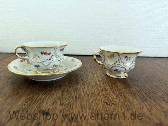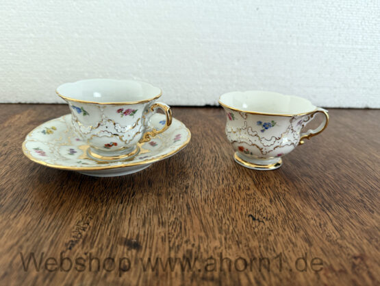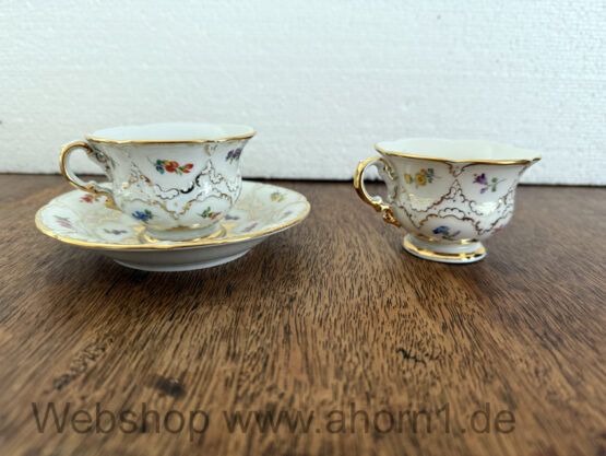 Konvolut an 2 Tassen und 1 Untertasse mit Blumen und Golddekor
