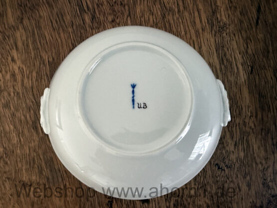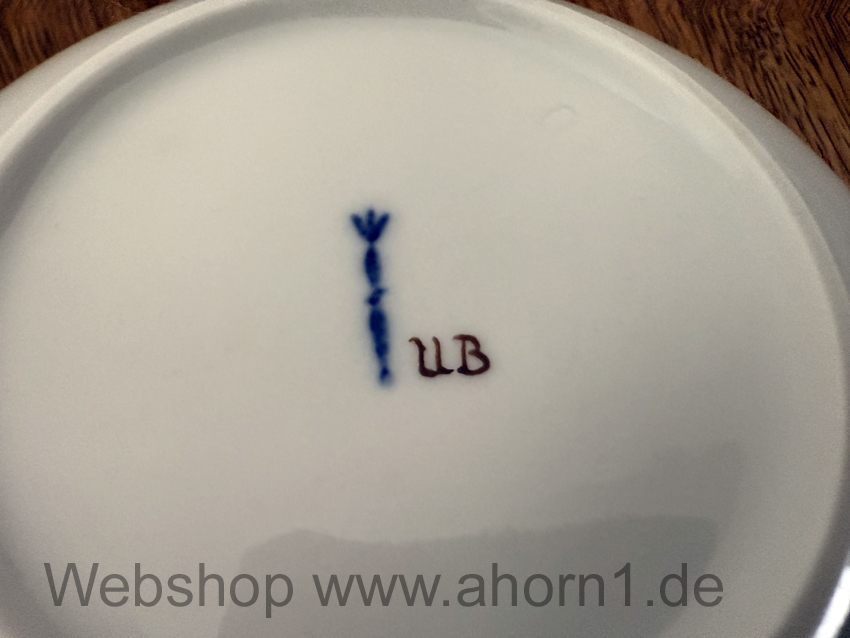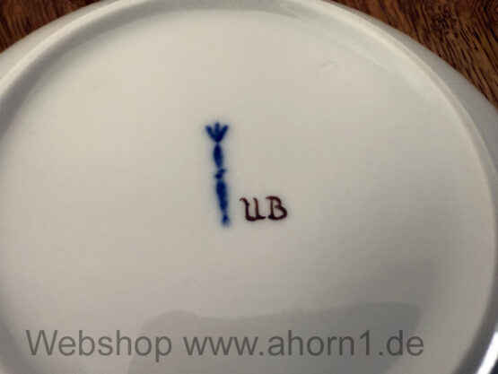 Mit Blumenmotiv. Im Boden die Initialen UP
