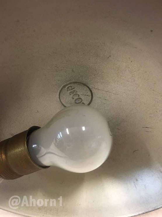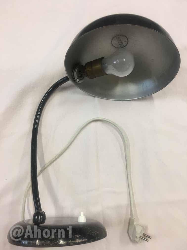 Optisch ist die Lampe in einem gutem Zustand für das Alter. Keine nennenswerten tiefen Kratzer oder Lackschäden, keine Beulen, minimale Lackschäden am Fuß, der Fuß ist von unten nummeriert.